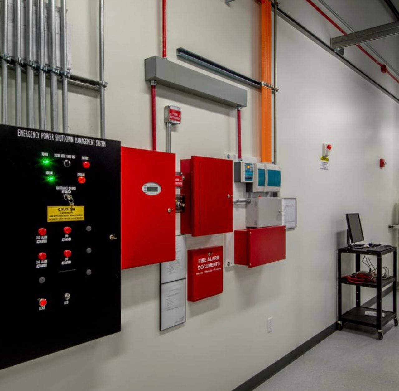 fire pump rooms (UL/FM), smoke detection networks, emergency